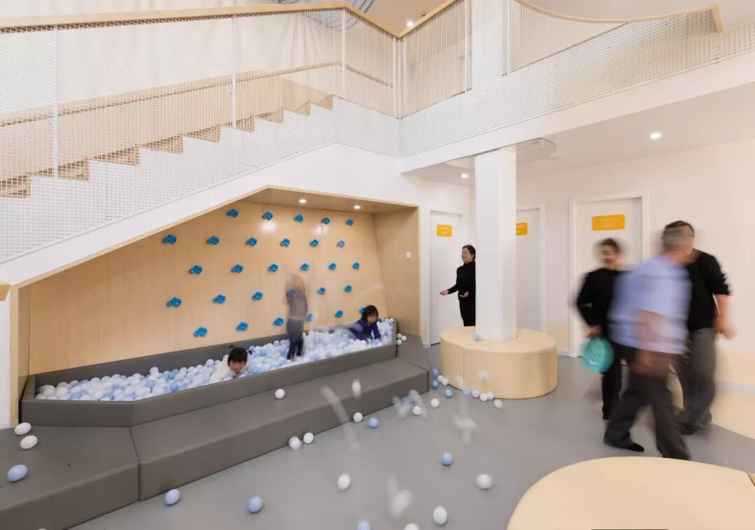 单调枯燥的等候被融入了观演和游戏的体验,在这里,家长也变成了孩子们的一员,重回童年,备受关爱。